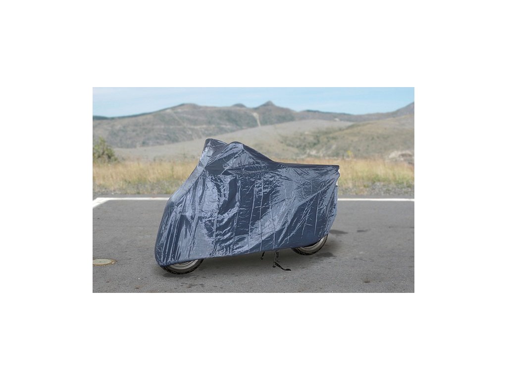 Prodyšná plachta na motocykl, vhodná proti prachu i znečištění. Jednoduché univerzální upevnění pomocí všité gumy.