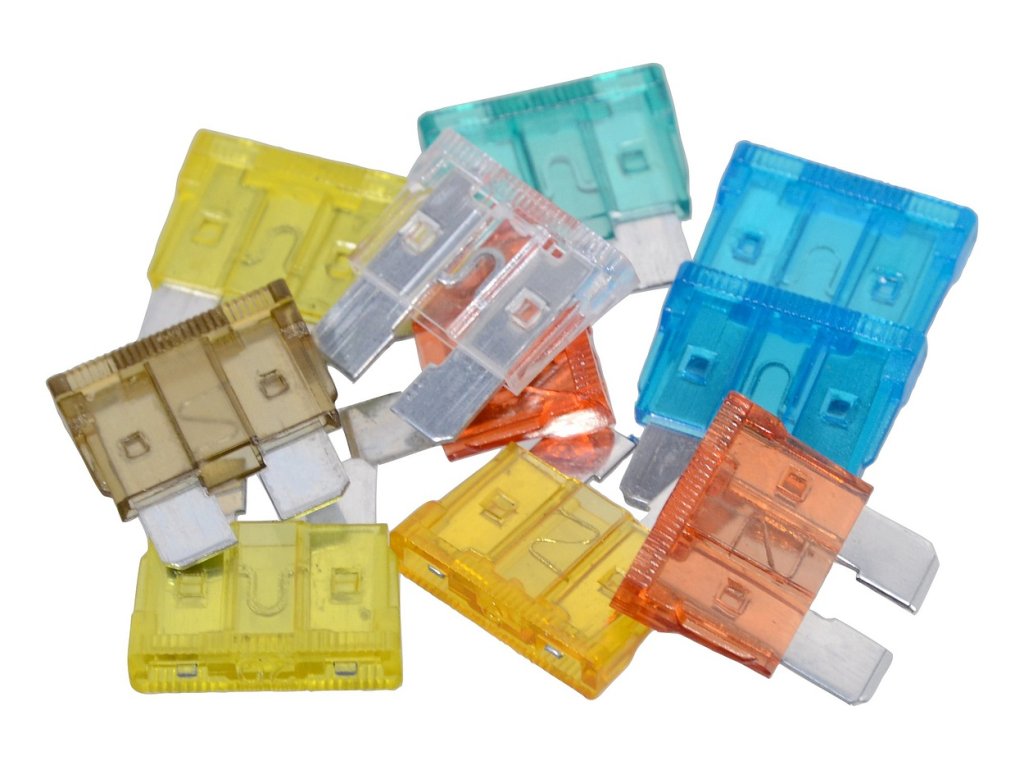Sada 10 kusů nožových pojistek pro použití v automobilech (max. 24V).