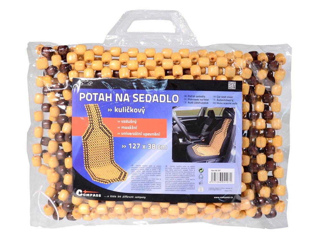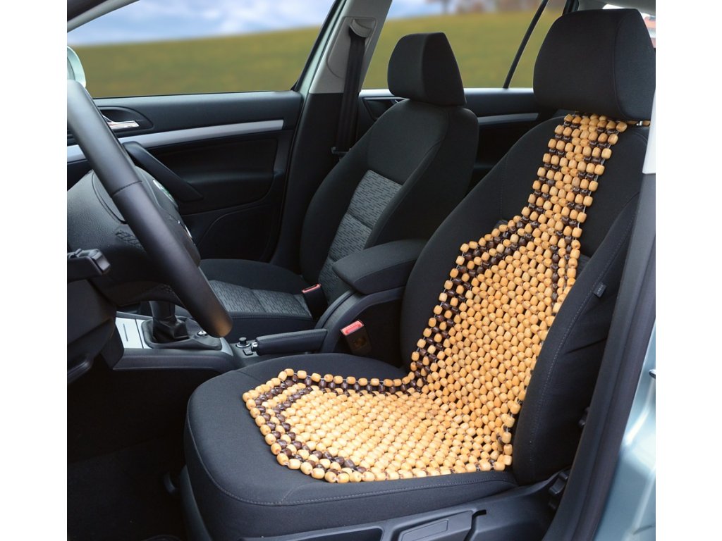 Potah je vyroben z dřevěných kuliček, které příjemně masírují tělo, podporují krevní oběh, pomáhají snižovat únavu i bolestivost zad a umožňují proudění vzduchu mezi sedadlem a zády řidiče.