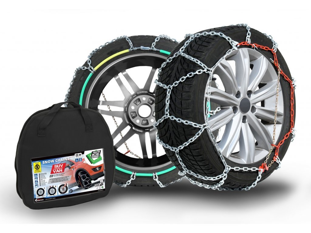 Sněhové řetězy, pro SUV/VAN do hmotnosti 7500 kg, splňující veškeré vyžadované evropské normy. Lze použít i pro dodávky a obytná vozidla.