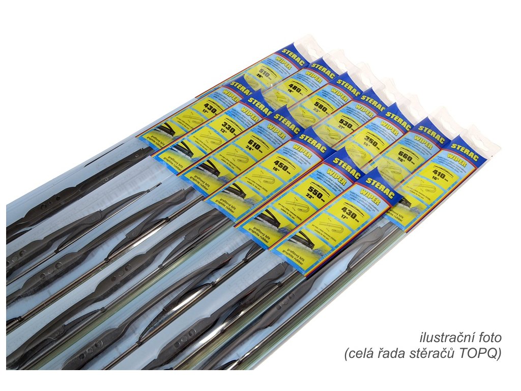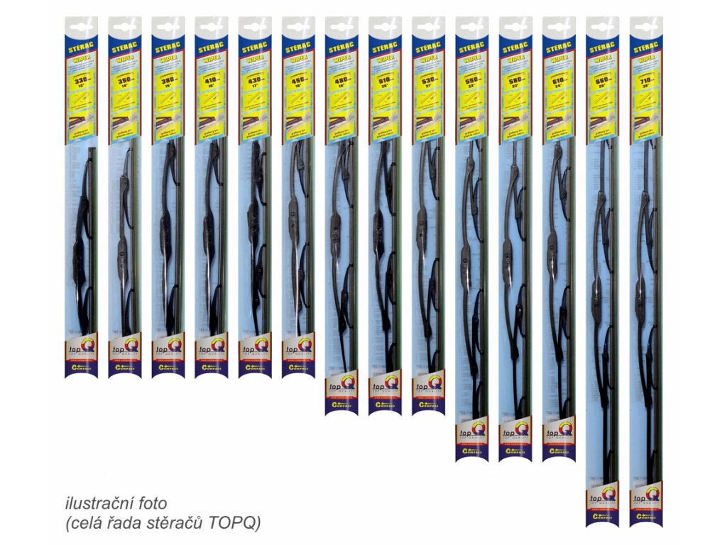 Masivní kvalitní celokovový stěrač TOP Q s grafitovým břitem. Tento stěrač je konstruován s vyváženým počtem vahadel tak, aby zajistil dokonalý přítlak a spolu s grafitovým břitem i dokonalé stírání s dlouhou životností.