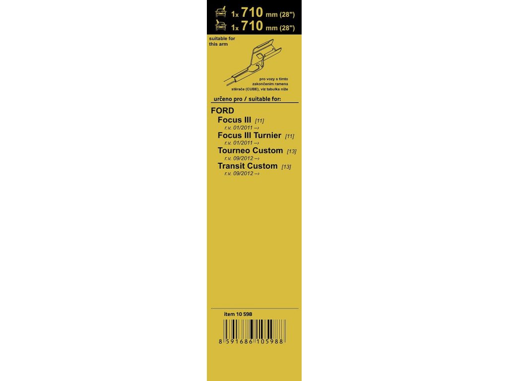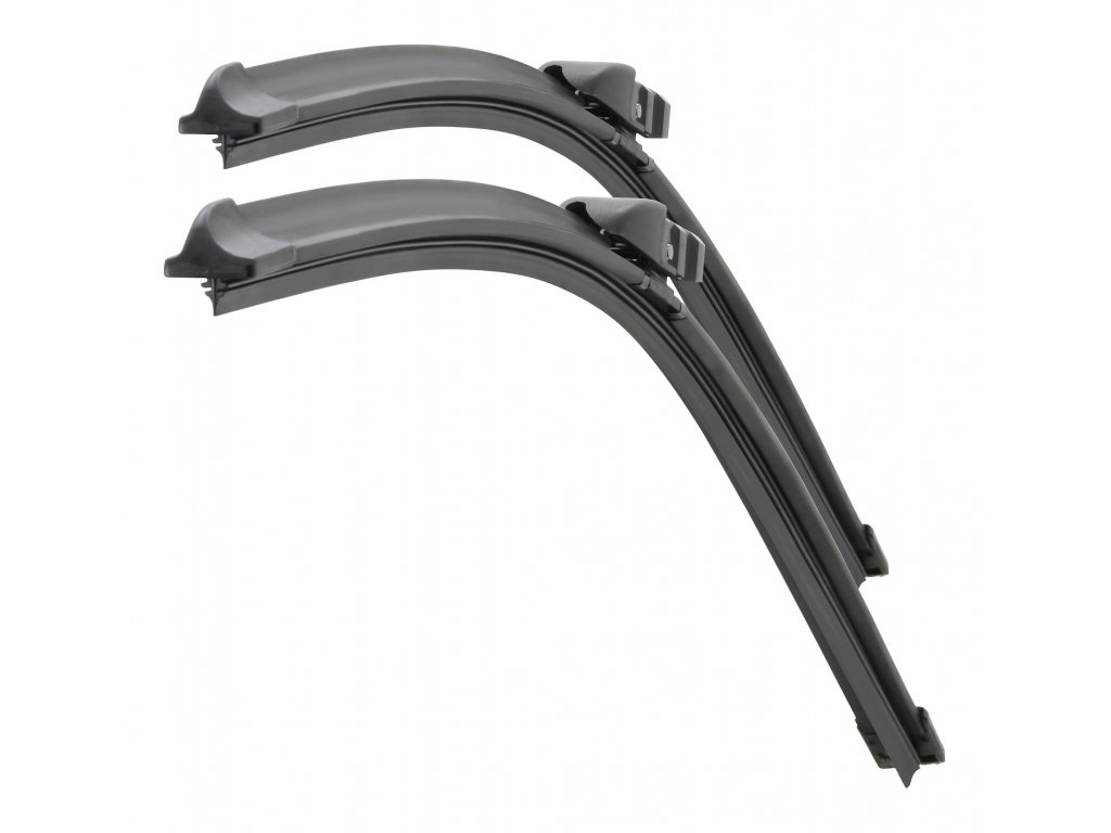 Sada dvou plochých stěračů FLAT (řidič + spolujezdec) se speciálním uchycením. Délky stěračů a systém uchycení na ramínko jsou přizpůsobeny vybraným vozům (viz tabulka použití).