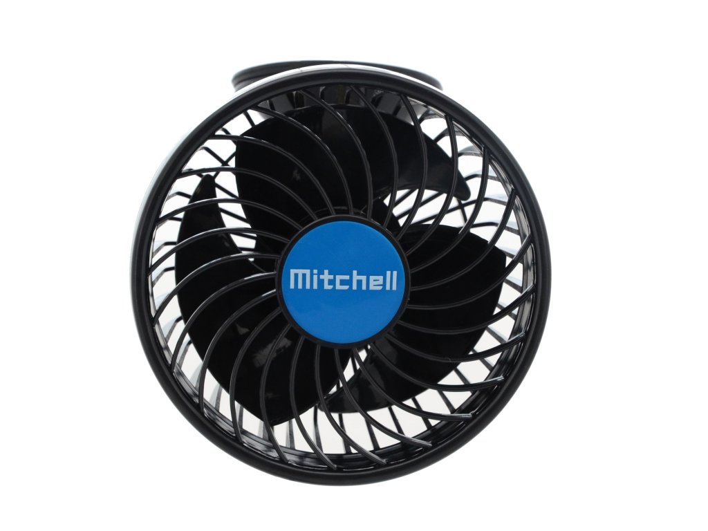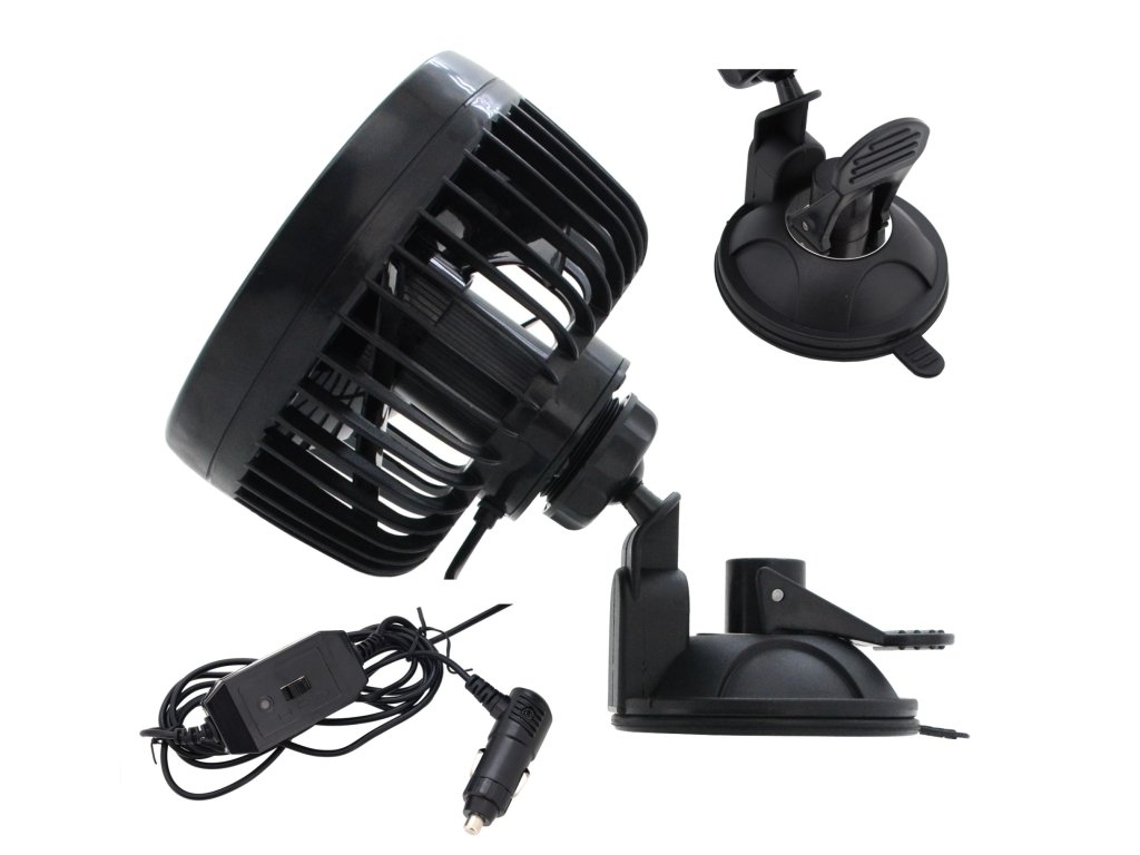 Napájení 24 V ze zásuvky autozapalovače. Ventilátor disponuje dvěma rychlostmi a díky kulovému kloubu je snadné větrák natočit prakticky jakýmkoliv směrem.