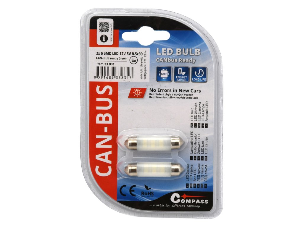 Žárovka 6 LED SMD 12V suf.10X39 SV8.5 NEW-CAN-BUS bílá 2ks