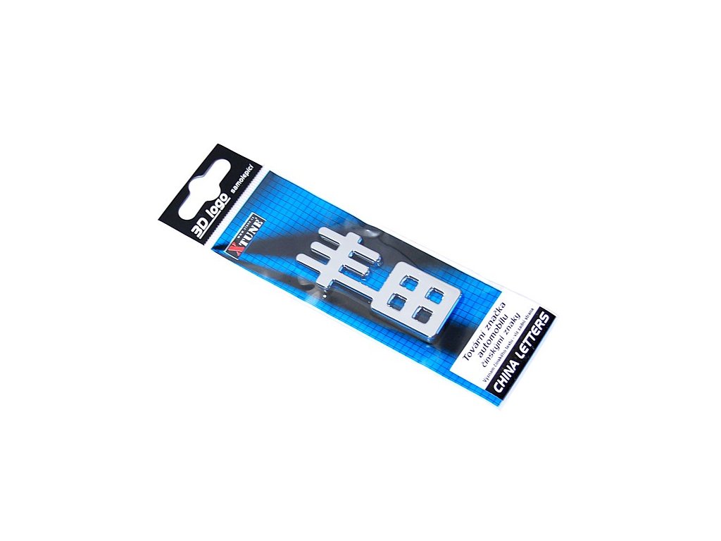 Plastový samolepící emblém řady 3D logo s povrchovou úpravou chrom. Motiv evropské značky automobilů psané čínskými znaky. Řada China letters.
